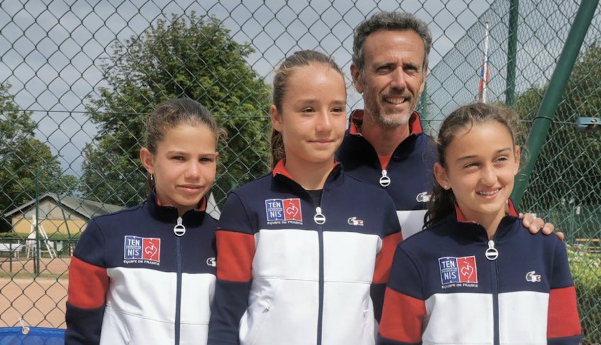 Lison Tapin, Lina Mismili et Ninon Carpentier avec Pascal Lasserre lors des championnats d'Europe U12 cet été.