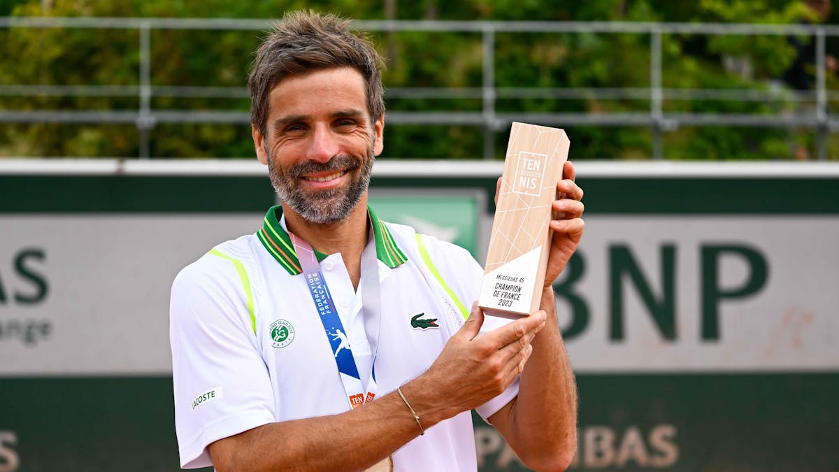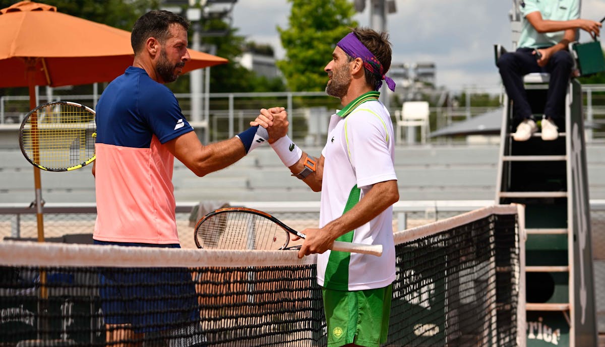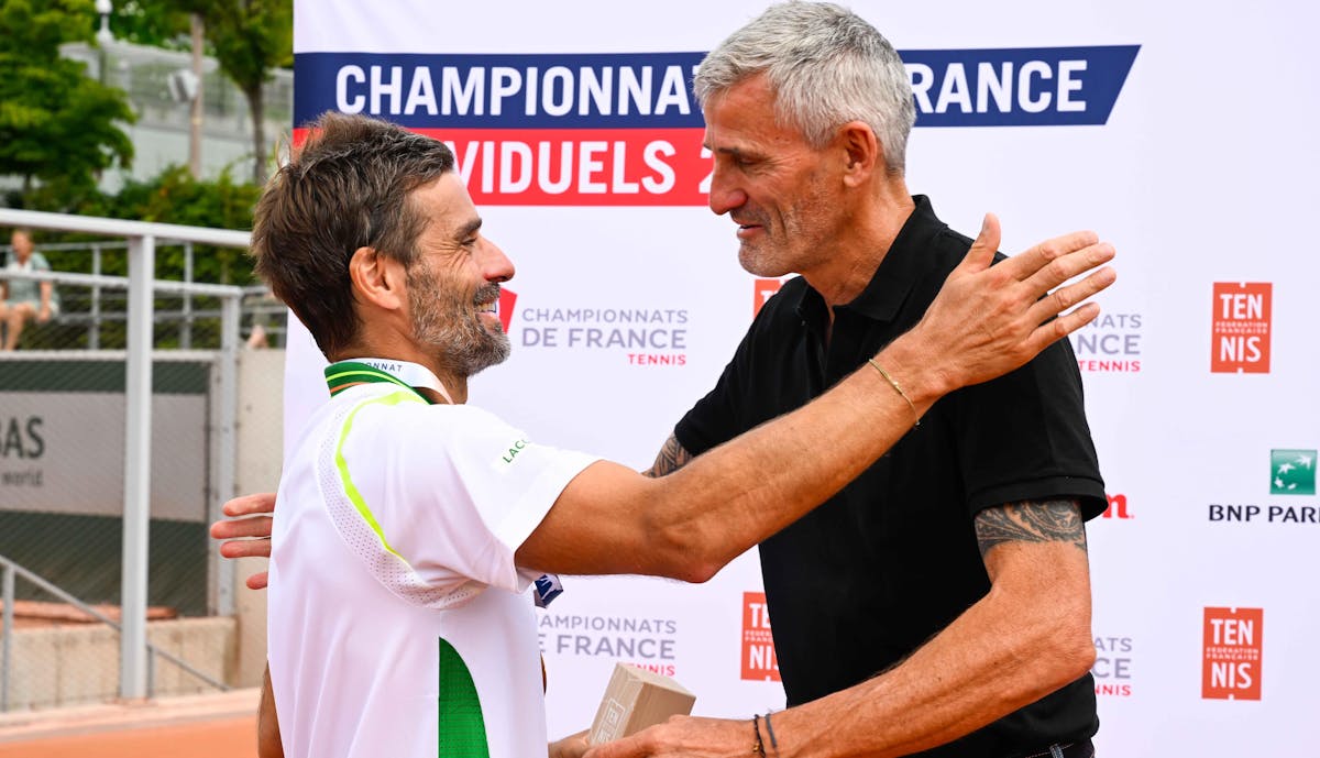 Les féliciations du président de la FFT Gilles Moretton au double vainqueur des 45 ans !
