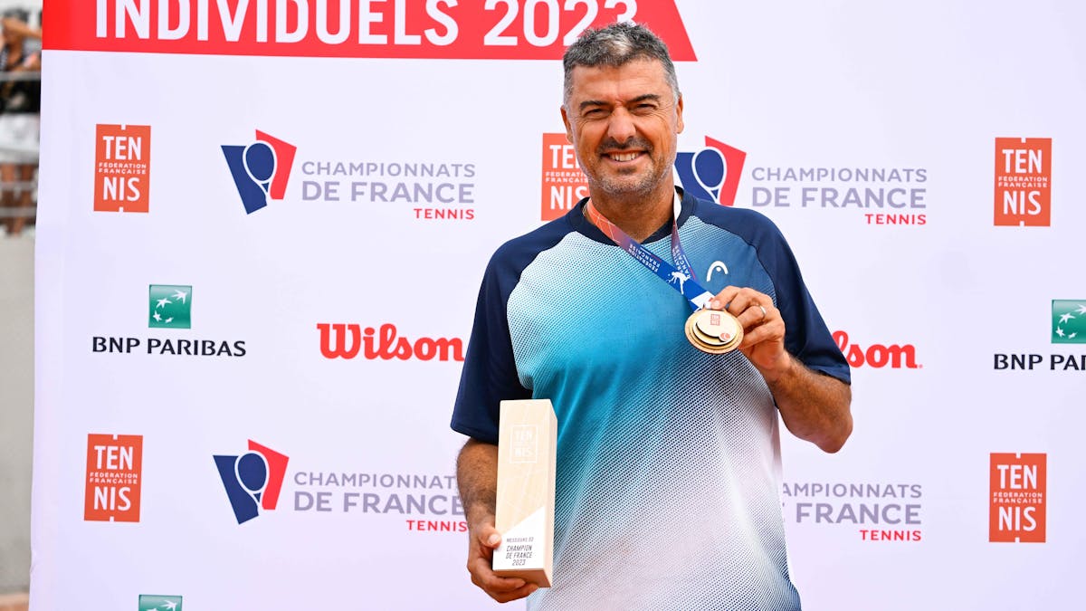 Les deux hommes se connaissent d'autant mieux qu'il ont été sacrés champions du monde par équipes avec la France en 2021. "Ce titre de champion de France, c'était l'objectif pour moi. Je m'entraîne pour ça et pour la "qualif" aux championnats du monde chaque année", précise le joueur du Stade Bordelais.Enseignant multicartes, Benoît Hallé travaille sur l'école de compétition dans son club du Stade Bordelais où il est aussi responsable du mini-tennis, ainsi qu'à la ligue de Nouvelle-Aquitaine, au CNUT de Bordeaux. "J'adore tous les publics à qui j'enseigne ! Je suis passionné par mon métier. On a des bons joueurs universitaires au CNUT. Ce n'est pas évident de trouver du temps pour s'entraîner, je travaille pas loin de 50 heures par semaine. Mais j'ai toujours l'envie, et parfois taper avec les jeunes du CNUT, c'est bon pour garder la forme !"Ses adversaires peuvent en témoigner, la forme de Benoît est toujours là, et ce même quand une petite blessure vient s'en mêler...(GB)