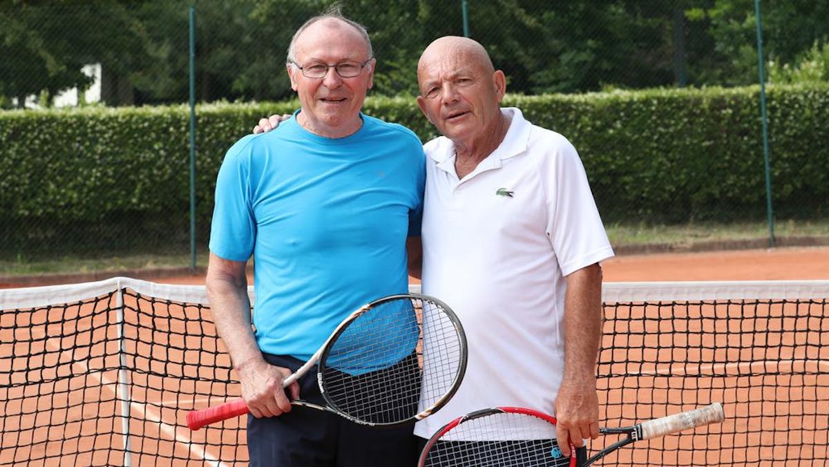 François Pierson (à d., CC Saint-Raphaël, 15/3) a dominé en finale des 75 ans messieurs Gery Plé (TC Emulation Nautique, 15/2) 7/6, 6/2.Le nouveau champion de France n'a pas concédé un set de la semaine. Il a notamment débordé la tête de série n°2 en quart de finale, Jean-Pierre Adrien, 6/1, 6/2.