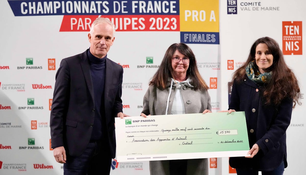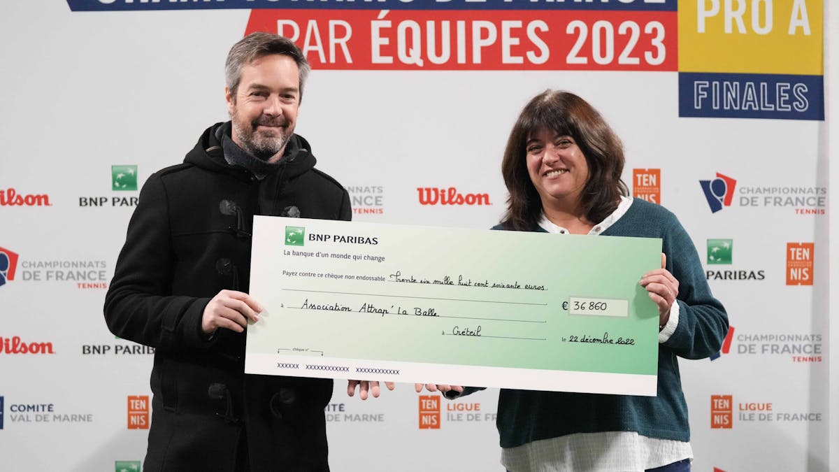 À l’occasion des finales par équipes Pro A, BNP Paribas a remis deux chèques en faveur des Apprentis d’Auteuil et d’Attrap’ La Balle dans le cadre de son opération solidaire des Aces du Cœur.