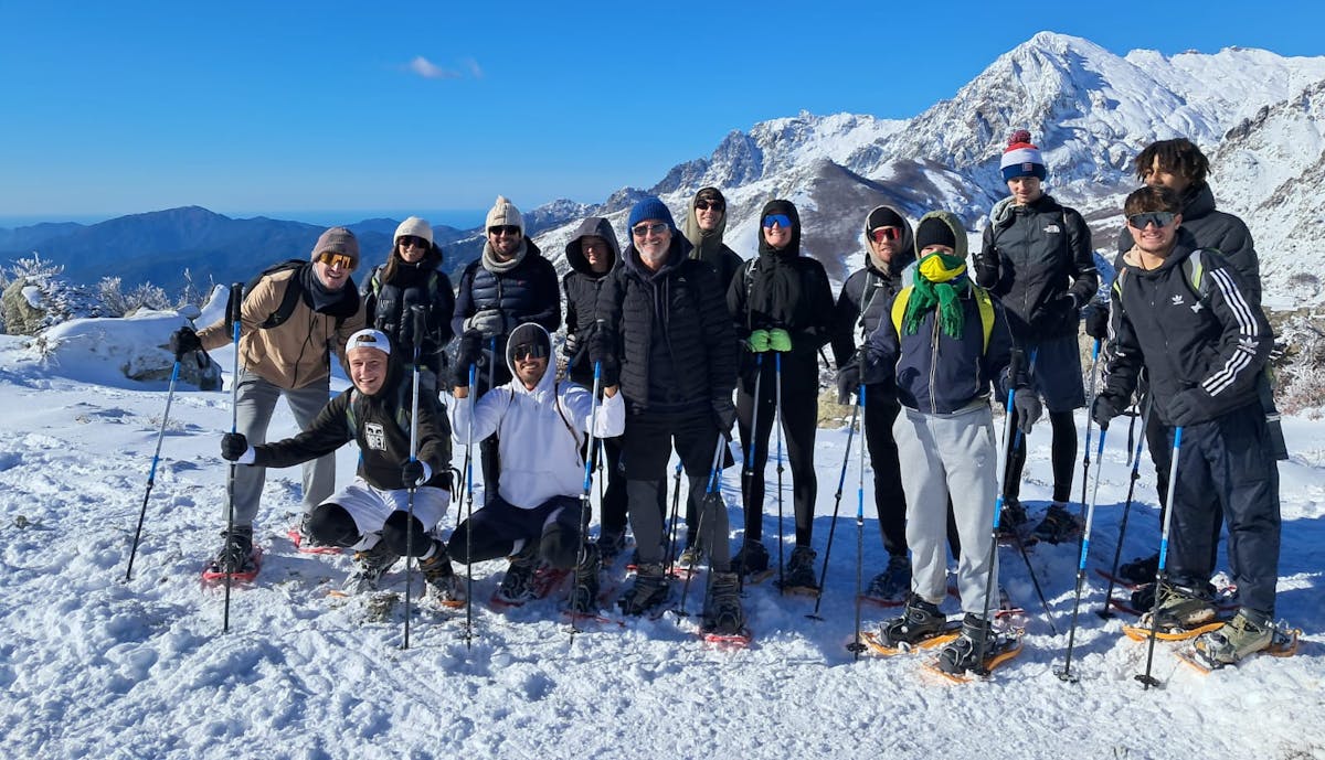 Pour cette "semaine de reprise", les participants ont pu découvrir les merveilles de l'île mais aussi ses sommets ! Une randonnée de quatre heures a ainsi été organisée sur les crêtes au-dessus d'Ajaccio, ainsi qu'une marche en raquettes, à plus de 1500 mètres d'altitude et en pleine neige, pour le plus grand bonheur des participants.