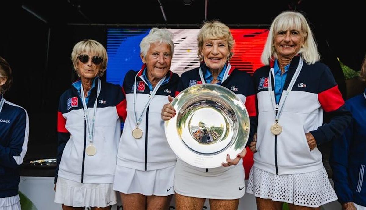 Scénario quasiment identique lors de la Doris Hart Cup (catégorie +80 ans). Malgré la perte d’un set face à l’Afrique du Sud, les Bleues ont conquis la première place du groupe C. Leurs deux victoires ensuite en simple, face aux États-Unis et à la Grande-Bretagne, ont permis à Frédérique Caillard, Michèle Bichon, Claudine Contoz et Mary Jane Marty de soulever le trophée.