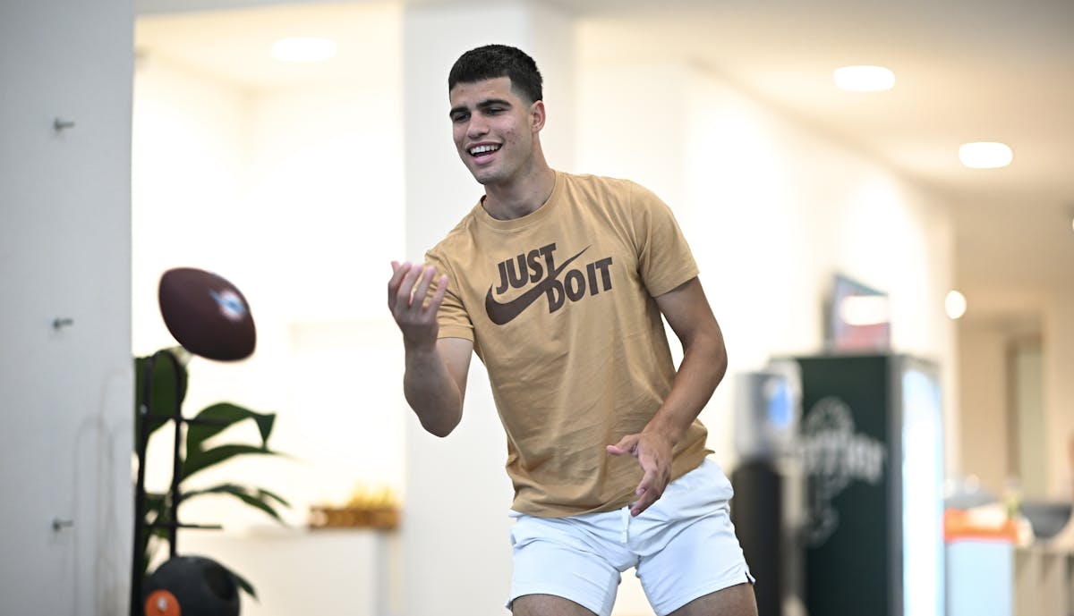 Les exercices d'avant-match de Carlos Alcaraz sont souvent centrés sur le coup d’œil.