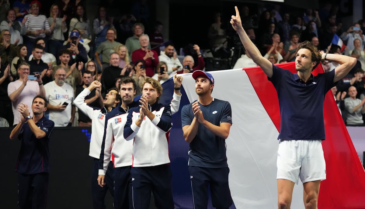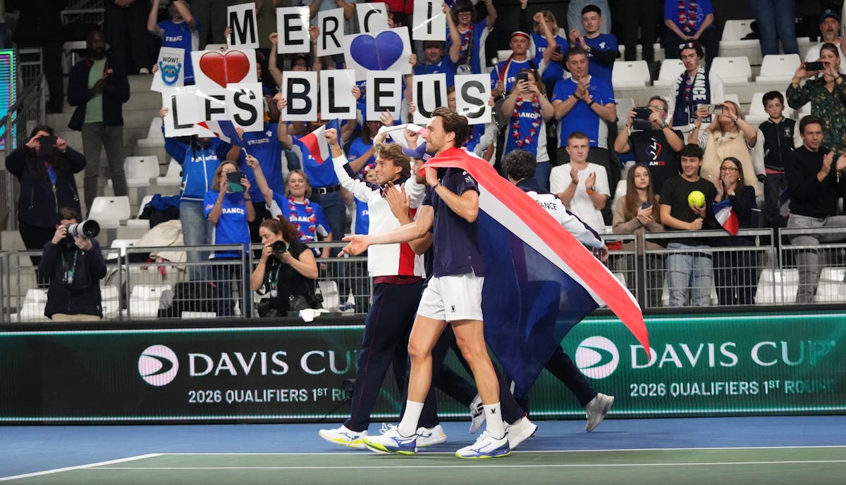 "Merci les Bleus, merci les Bleus, merci les Bleus !" Après avoir sauté dans les bras de son capitaine, celui qui a offert à l’équipe de France le point de la qualification pour la première fois depuis ses débuts en Coupe Davis a entonné cet air avec le public, au micro du speaker de la salle. "C’était l’essentiel de décrocher la qualification et c’est en partie grâce à vous, a-t-il poursuivi en remerciant le public. Le match n’était pas facile, Pierre-Hugues et Ben ont parfaitement commencé la journée, ils ont très bien joué, ils ont lancé le public. Ça m’a permis de rentrer sur le court avec beaucoup de confiance."