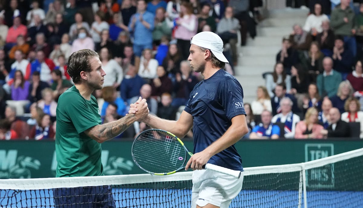Alors que l’horloge du Chaudron affichait les deux heures de jeu, les deux hommes se sont engagés dans un nouveau tie-break qui semblait être à sens unique. À première vue. Mené 6-3, Arthur est parvenu à sauver trois balles de set pour s’adjuger la victoire. "Les cinq derniers points sont joués de la bonne manière, avec le public qui s’enflamme vraiment. C’était cool de finir en deux sets et surtout de ramener la France à 1 partout, parce que c’était le plus important en entrant sur le court", a conclu celui qui s’est montré plus puissant et plus précis dans cette fin de rencontre. Il a ainsi empoché le deuxième set, le match et le premier point des Bleus ! Le tout, dans une ambiance dont le Chaudron a le secret.