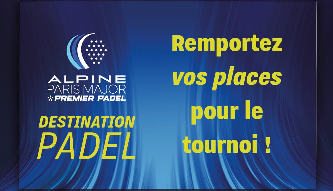 Chaque paire victorieuse d’un tournoi labellisé “Destination Padel” remportera 2 places pour l’Alpine Paris Major, valables du lundi 8 au jeudi 11 septembre 2025.