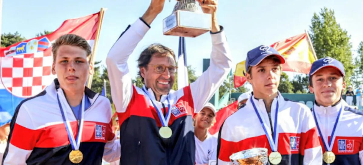 Quel été doré ! Les équipes de France accumulent les titres de champions d'Europe depuis quelques semaines. Après le sacre en Beach Tennis et en Copa del Sol en juillet, deux nouveaux titres ont été obtenus par les Bleus ce mercredi 8 août : la Coupe Borotra et la Coupe Valério/Galéa. Sans compter le titre individuel de Sean Cuenin, champion d'Europe chez les 14 ans...En s'adjugeant les trois titres des Coupes d'Europe d'été, à savoir les 14 ans et moins, les 16 ans et moins et les 18 ans et moins, la France réussit un triplé historique. Jamais dans l'histoire de ces Coupe d'Europe d'été, elle n'avait remporté ces trois médailles d'or la même année.Et cette formidable moisson n'est peut-être pas terminée, puisque les 12 ans et moins disputent cette semaine la phase finale du Tennis Europe Challenge Nations à Biot et les Coupes du monde vont s'enchaîner. Les 14 ans et moins sont d'ailleurs déjà qualifiés pour les quarts de finale à Prostejov, en République tchèque.C'est au Touquet que les 16 ans et moins, conduits par le capitaine Bruce Liaud, ont confirmé leur titre en Winter Cup, acquis en février. Malgré la blessure au cou de Harold Mayot, absent de la demi-finale et de la finale, les Bleuets ont donc réussi un superbe doublé. Lilian Marmousez a pris le relais de son ami aux côtés du leader Arthur Cazaux. Ce fut même un sans-faute puisque la France a gagné ses trois matches 3/0, face à la Lettonie, la Hongrie et l'Italie en finale.Devant un public nombreux et enthousiaste, Lilian Marmousez a d'abord débordé Flavio Cobolli 6-3 6-2 puis Arthur Cazaux a conclu face à Luciano Darderi 6-2 7-6(2).