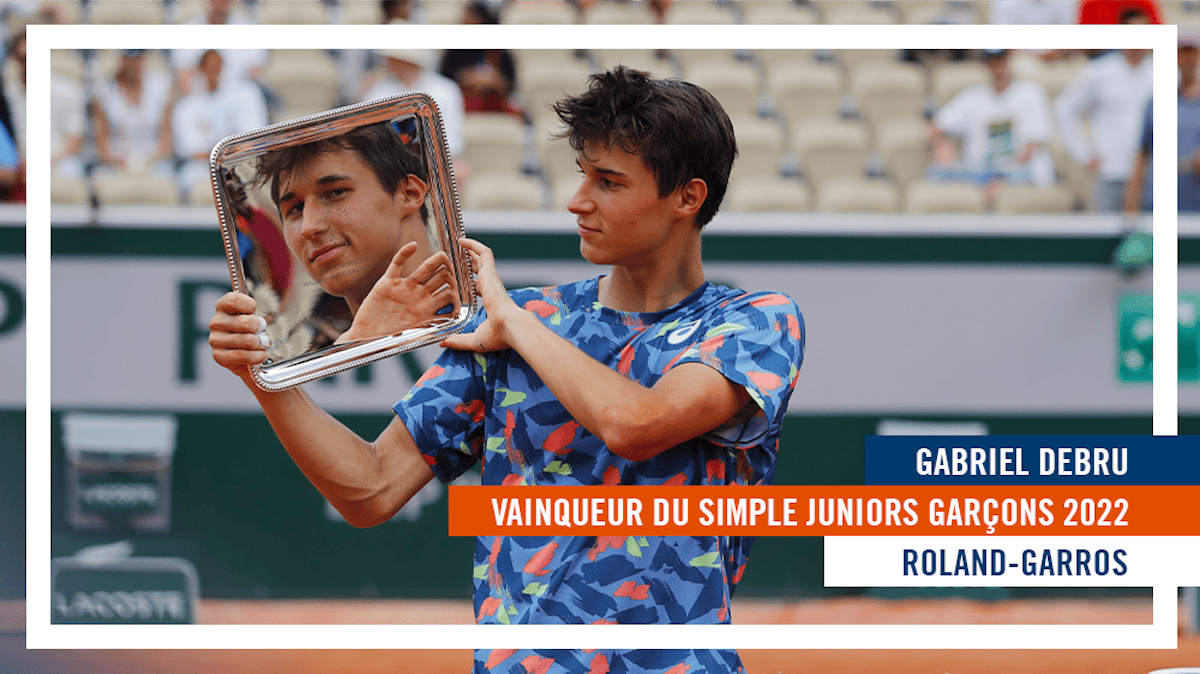 Grand espoir du tennis français, déjà en vue lors des qualifications du simple messieurs, Gabriel Debru a parachevé son superbe Roland-Garros en triomphant chez les juniors.Le joueur de Grenoble a remporté le titre aux dépens du Belge Gilles Arnaud Bailly (7/6(5), 6/3 en 2h03). Il a succédé à un autre Français, Luca Van Assche, parachevant ainsi un "back to back" tricolore plus vu depuis les années 70.Debru a parfaitement assumé les attentes autour de lui tout au long d'un parcours bien maîtrisé, avec un seul set perdu en demi-finales face au Croate Dino Prizmic. En finale, il a toutefois dû serrer le jeu face à la solidité de fond de court de Gilles Arnaud Bailly (âgé de 16 ans comme lui), qui a résisté jusqu'au jeu décisif du 1er set – en écartant une balle de set à 6-5 – puis jusqu'à 3-3 au 2e set. Mais le Français, qui a globalement toujours été devant, a su faire prévaloir sa puissance supérieure dans les moments chauds."J'ai été solide, j'ai globalement bien servi et mon revers a été plus efficace qu'en demi-finales, a commenté l'élève de Boris Vallejo au CNE, lequel avait pris le relais de Stéphane Huet en février dernier. Gagner mon premier Grand Chelem, en plus devant tous mes proches, c'est une émotion fabuleuse. J'en rêvais. C'est un excellent résultat qui vient valider le travail effectué."