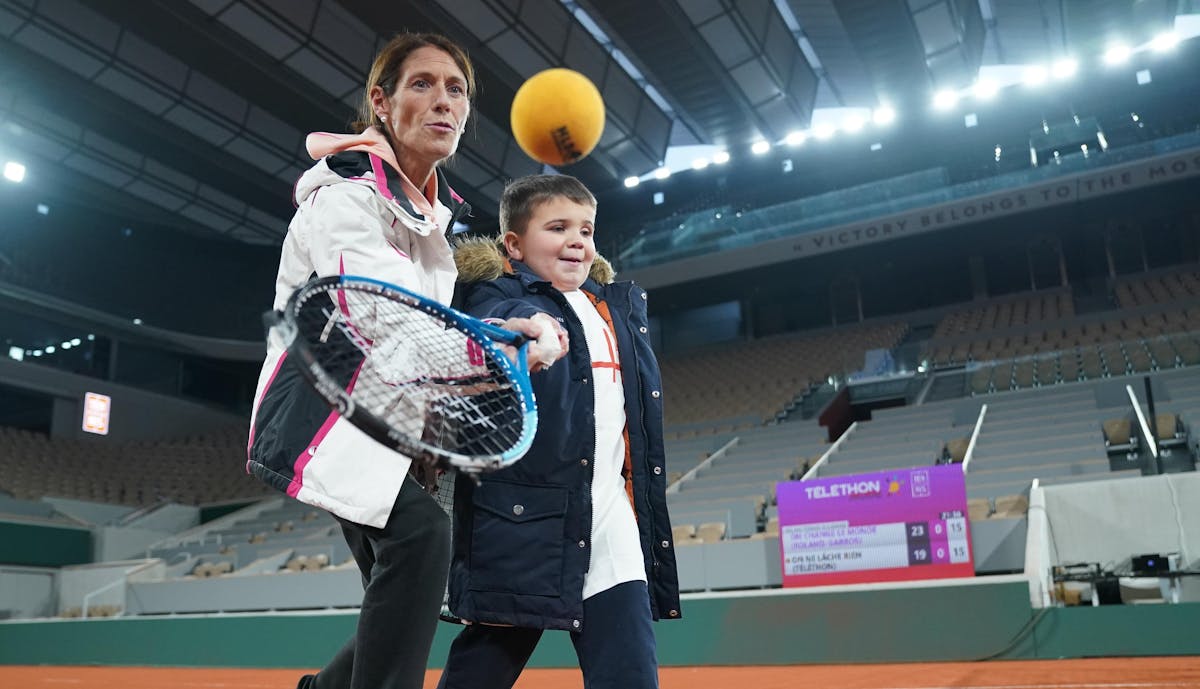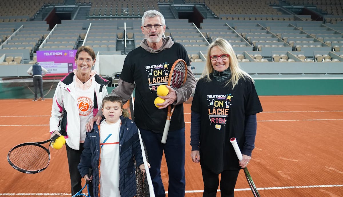 Ce week-end, Laure Joineau a accompagné à Roland-Garros Ilyess, un jeune garçon non voyant, pour participer au Téléthon digital."Nous avons vécu une journée magique. On a joué face à Gilles Moretton et Florence Hutin. On a perdu 22-20... un match très serré ! On a joué avec des balles sonores que j'ai apportées. Gille ne connaissait pas, ça l'a beaucoup intéressé. C'était juste trop bien".