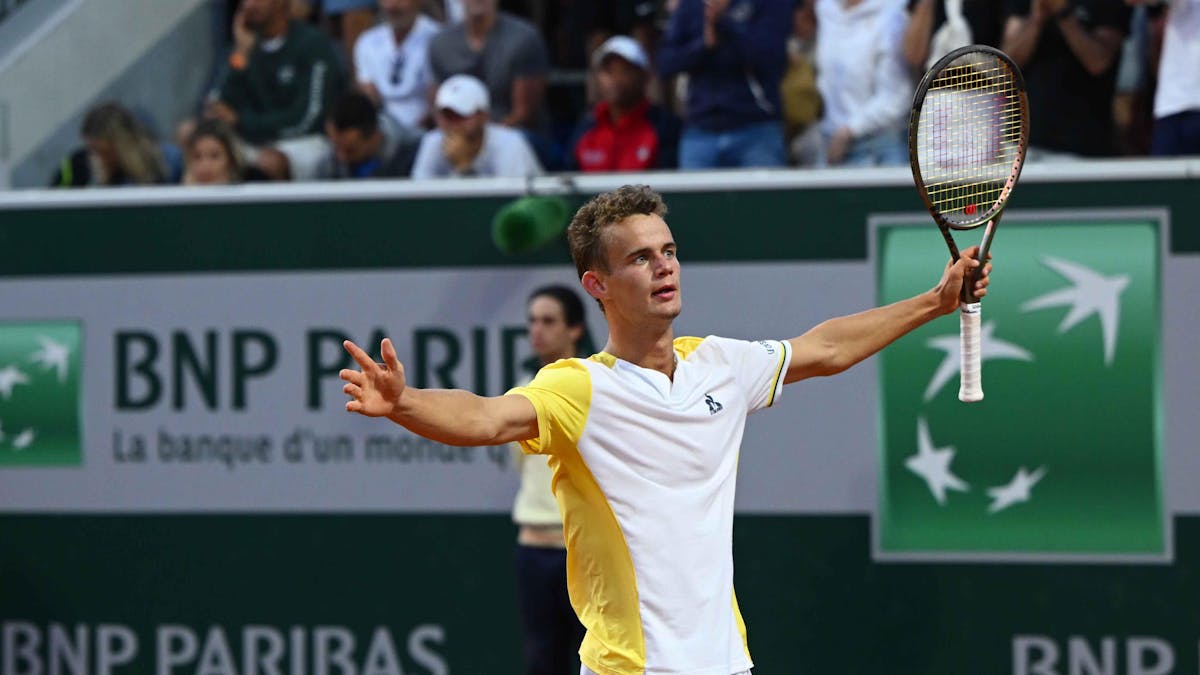 Tandis que Luca Van Assche a pris les devants dans son match, Alexandre Müller entre sur le court Philippe-Chatrier pour y affronter en session de soirée l'Italien Jannik Sinner.