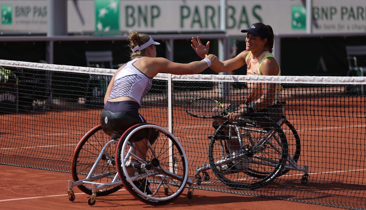 17h00 : La reine du tennis-fauteuil féminin Diede De Groot est trop forte pour Emmanuelle Mörch, qui résiste plutôt bien à la n°1 mondiale (6/2, 6/2).C'est la 100e victoire d'affilée de la Néerlandaise ! Une performance que la directrice du tournoi, Amélie Mauresmo, est venue saluer sur le court.