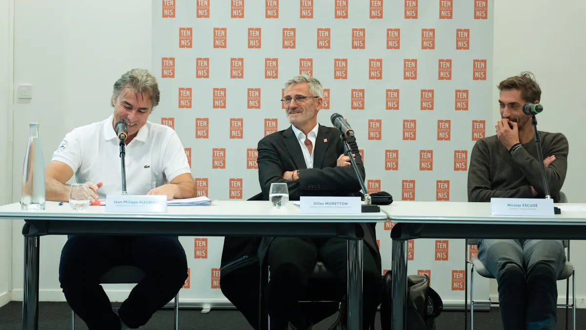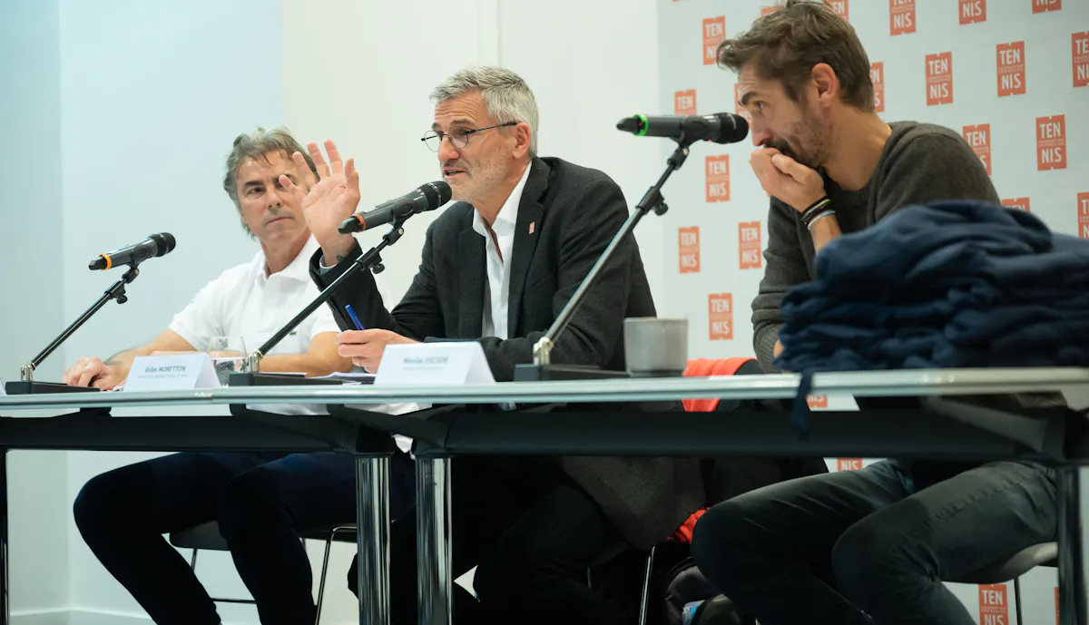 De g. à d., Jean-Philippe Fleurian, le responsable du paratennis à la FFT, le président Gilles Moretton et le Directeur technique national Nicolas Escudé.