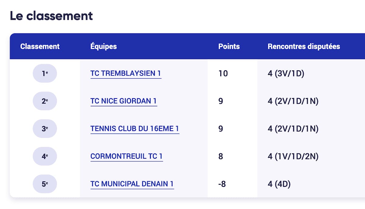Dans l'autre rencontre, le TC Nice Giordan n'a pas eu à jouer face au TCM Denain, forfait général et relégué à l'échelon inférieur.