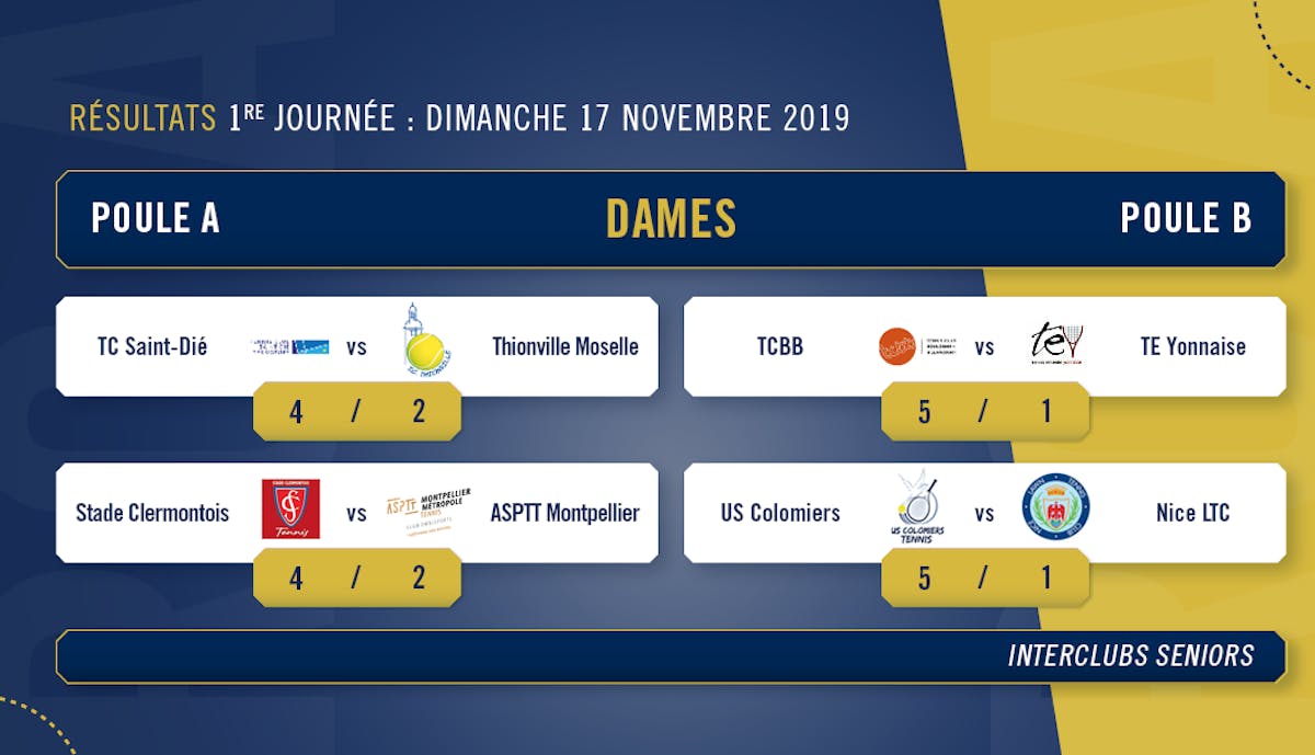 AccueilActualitésRésultats et classements journée 1 Pro A féminineRésultats et classements journée 1 Pro A féminineArticleChampionnats de France17 novembre 2019Agrandir l'imageDécouvrez les résultats complets de la première journée féminine.Agrandir l'imageLes résultats completsSur le même sujetRoland-Garros Tennis Club : place à la deuxième session !ArticleChampionnats de FranceRoland-Garros Tennis Club : place à la deuxième session !6 août 2025Roland-Garros Tennis Club : les championnats de France de retour au stade !ArticleChampionnats de FranceRoland-Garros Tennis Club : les championnats de France de retour au stade !28 avril 2025Une année en bleu - 11e épisode : du suspense et deux premières en Pro A ArticleChampionnats de FranceUne année en bleu - 11e épisode : du suspense et deux premières en Pro A 14 décembre 2023Voir tous les articles