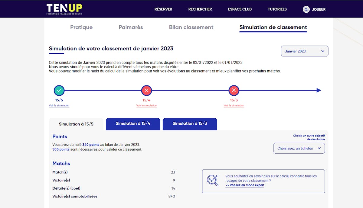La simulation du classement dans Ten’Up (sur l’application mobile et sur le site Tenup.fr) est à nouveau ouverte et propose de nouvelles fonctionnalités.