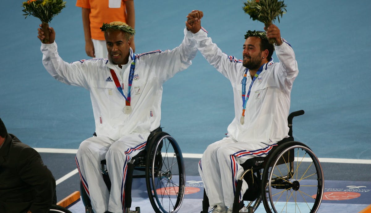 Et puis bien sûr ces premiers Jeux, c’est aussi le souvenir de mes premières médailles : le bronze en simple et l’argent en double (avec Lahcen Majdi). Je n’étais pas encore au sommet de ma carrière et j’étais donc extrêmement fier de ce double résultat. Sur le papier, je ne peux pas faire mieux ! Je perds contre le n°1 mondial en demi-finales du simple (le Néerlandais Robin Ammerlaan) que je n’avais jamais battu avant. Je ne le battrai que l’année d’après. En double, on perd en finale contre les n°1 mondiaux (les Japonais Shingo Kunieda et Satoshi Saida). On a fait le job !