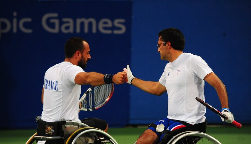 Nous sommes partis là-bas avec l’ambition de décrocher l’or. Nous étions les favoris, la meilleure équipe, avec notamment notre première victoire à Roland-Garros obtenue l’année d’avant. Mais en simple, nous avions lui et moi aussi une chance de médaille. Et ça n’a pas fonctionné. Ma préparation avait été perturbée pendant plusieurs mois, j’avais une plaie à la cuisse près du fessier qui se ré-ouvrait dès que je remontais sur le fauteuil. J’ai même eu peur de ne pas passer la visite médicale. Les problèmes de peau sont vérifiés de près pour les paraplégiques. J’ai passé des mois avant le départ pour Pékin à somatiser sur cette blessure.