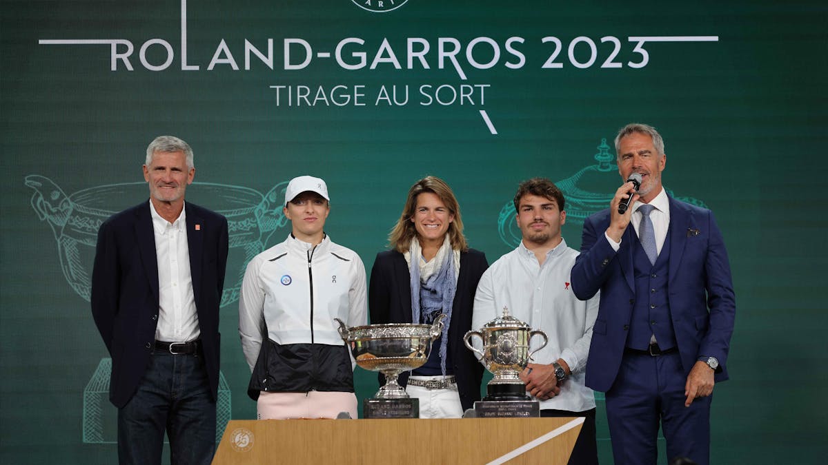 Effectué par le rugbyman Antoine Dupont et par la tenante du titre Iga Swiatek, le tirage au sort effectué à l'Orangerie d'Auteuil, dans le stade Roland-Garros, a d'abord été l'occasion pour le président de la FFT Gilles Moretton, de regretter cette année l'absence de Rafael Nadal, l'homme aux 14 titres, et de rappeler que l'on célébrera les 40 ans de la victoire de Yannick Noah.