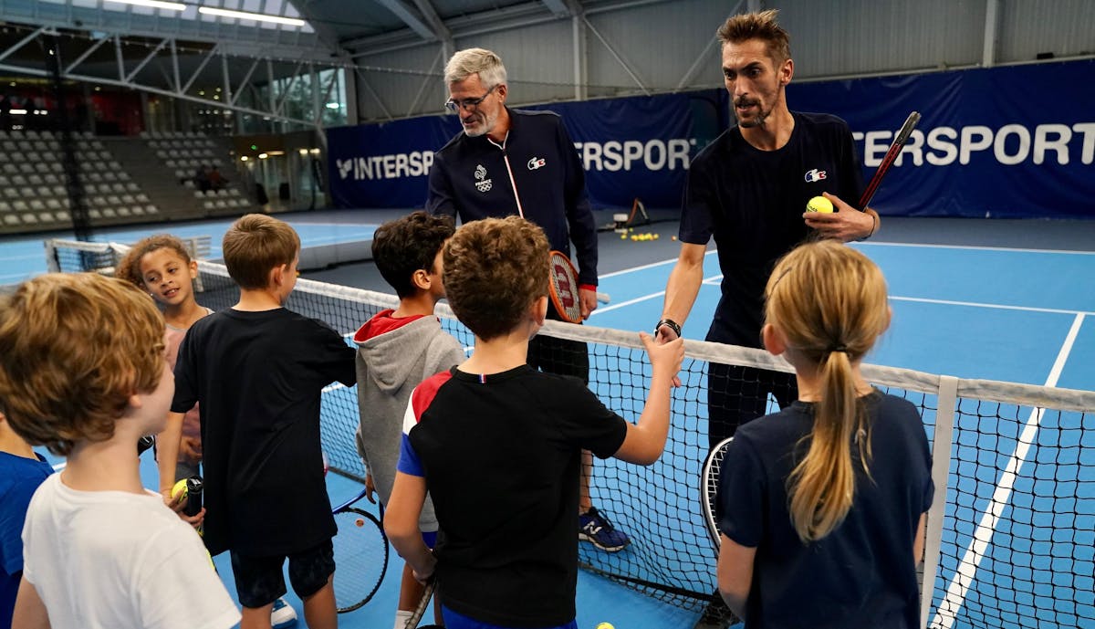 Un clinic avec les enfants pour finir la journée avec le président Gilles Moretton et le DTN Nicolas Escudé.