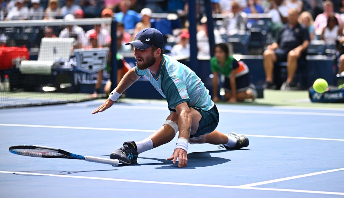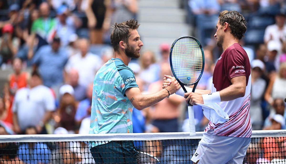 Pour son premier huitième de finale en Grand Chelem, Corentin Moutet avait les honneurs du Stadium Arthur Ashe, un court qu'il découvrait. L'expérience a d'abord été difficile face au finaliste de Roland-Garros, Casper Ruud (n°5), vainqueur des deux premiers sets 6/1, 6/2.Malgré un bon premier jeu où il s'est procuré deux balles de break, puis un 2e jeu gagné blanc, le gaucher du TC Paris a été étouffé dans ces deux premiers actes par la puissance et la solidité du Norvégien. Il n'a pas non plus réussi à conserver sa concentration, évanescente.