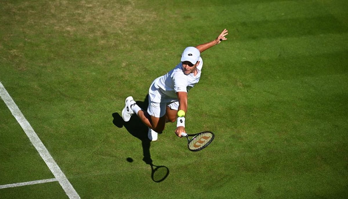 Trois matchs, pas un set perdu en route : Harold Mayot a fait très fort aux qualifications de Wimbledon 2023, disputé sur le gazon de Roehampton. Ce jeudi, le Lorrain a validé son billet pour le tableau final en écartant l'Italien Matteo Gigante en 1h40 tout juste (6/4, 6/2, 6/2). Il s'est notamment montré efficace au service (9 aces, 75% de points remportés derrière sa première balle) et sur balles de break (6 converties sur 9 occasions).