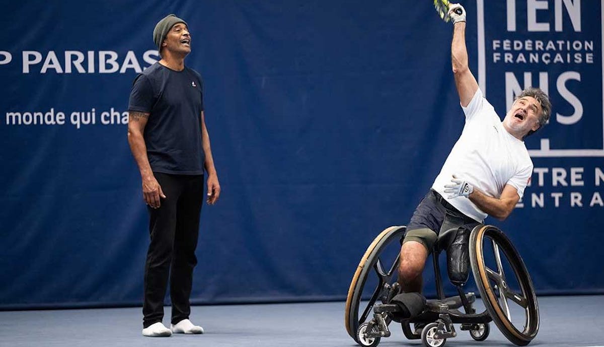 Il travaillera notamment en étroite collaboration avec Jean-Philippe Fleurian, responsable du haut niveau paratennis, et Patrick Labazuy, chargé de mission paratennis.Yannick Noah, nouveau capitaine de l’équipe de France masculine de tennis-fauteuil, a détaillé les raisons qui l'ont conduit a accepté ce rôle."L’idée d’être capitaine est venue de Stéphane Houdet qui m’avait appelé avant les JO de Tokyo. Il m’avait dit "tu as joué en individuel, tu as gagné la Coupe Davis, la Fed Cup mais tu n’es pas un vrai dingue car tu n’es jamais venu avec nous." J’ai été bouleversé et je me suis dit quelle bonne idée ! Ensuite, il a fallu un peu de temps pour que cela se mette en place. C’est une aventure fantastique. Je suis hyper excité. Nous sommes actuellement dans une phase où l’on apprend à se connaître. Je découvre aussi les spécificités du tennis-fauteuil, les zones à travailler, nos points forts et nos points faibles. C’est passionnant. Nous organiserons un stage en février au CNE. Ensuite, nous nous retrouverons aux Championnats de monde en Turquie au mois de mai, puis à Roland-Garros, et lors de deux autres tournois au mois de juin avant la préparation pour les Jeux qui se dérouleront à la fin du mois d’août (30 août au 7 septembre).C’est une aventure humaine extraordinaire. Les gars sont fantastiques, à l’écoute. Nous sommes à huit mois des Jeux et pour l’instant l’objectif est de s’améliorer au quotidien. Si certains comme Stéphane Houdet, ont déjà un beau palmarès, d’autres ont une belle marge de progression. L’objectif est de les mettre dans les meilleures conditions possible la semaine du tournoi et de performer au maximum."